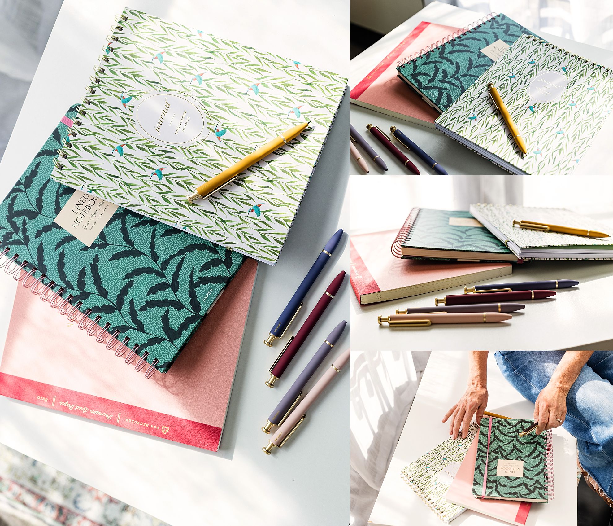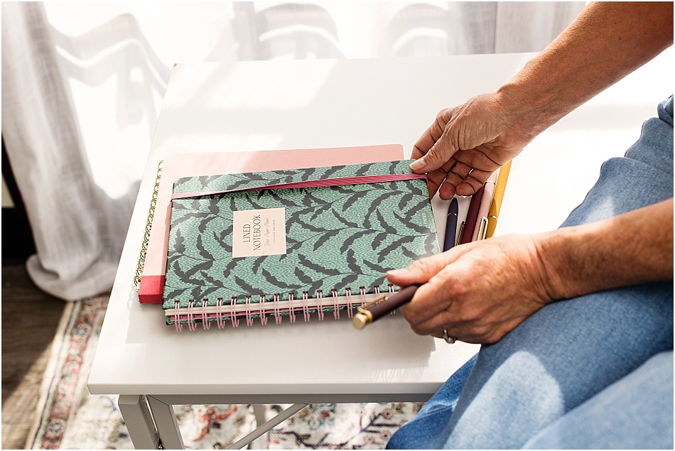 We mixed studio shots with outdoor journaling, movement, relaxed moments — so her gallery felt dynamic instead of staged.